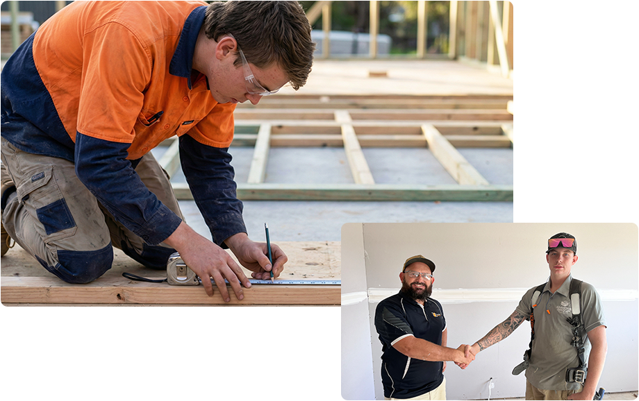 Learn carpentry on the job, get paid from day one, and earn your Certificate III in Carpentry in 3–4 years. No full-time classroom required.
